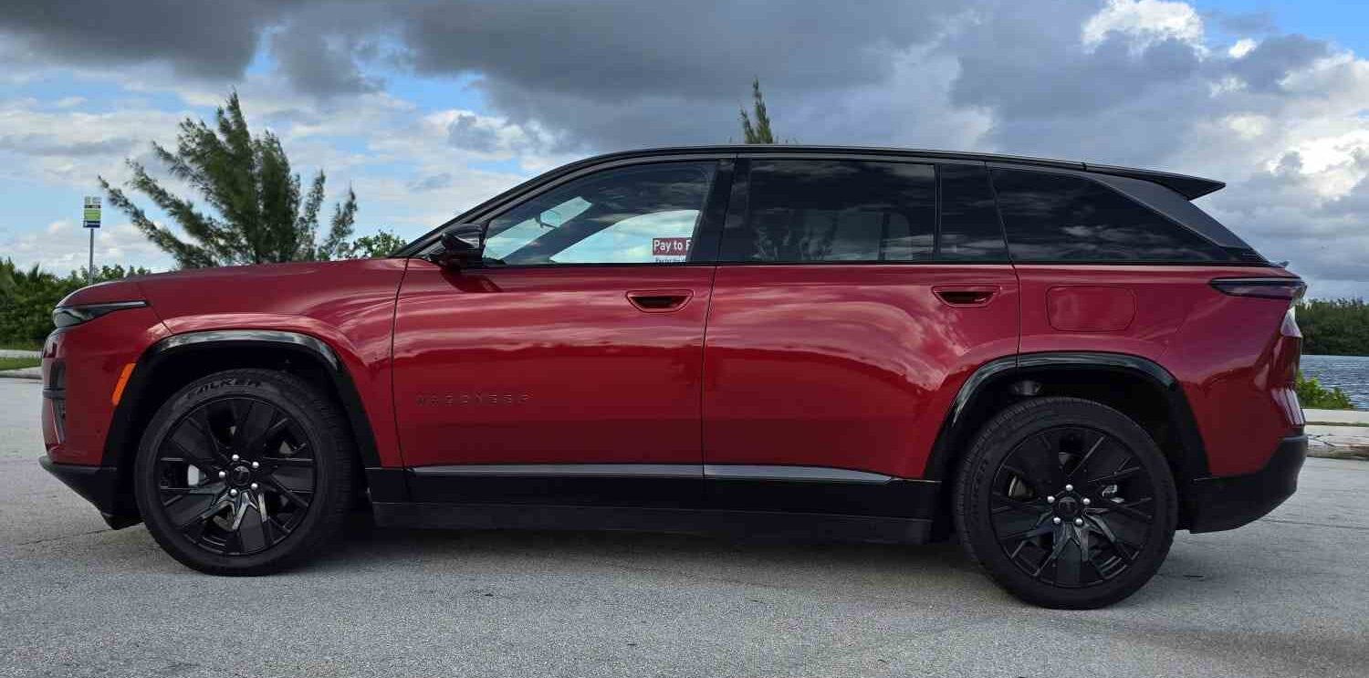 El Wagoneer S, es el primer vehículo eléctrico de batería de la marca, evita las sutilezas y desarrolla hasta 600 caballos de fuerza mediante dos motores. Esa potencia es suficiente para impulsar a este EV con tracción total de 0 a 100 km/h en tan solo 3,4 segundos. La EPA estima una autonomía de hasta 472 kilómetros, cifra que se ve reforzada por su elegante diseño aerodinámico, ideal para un Jeep. El fabricante afirma que su coeficiente de resistencia aerodinámica de 0,29 es el más bajo jamás visto en un Jeep.