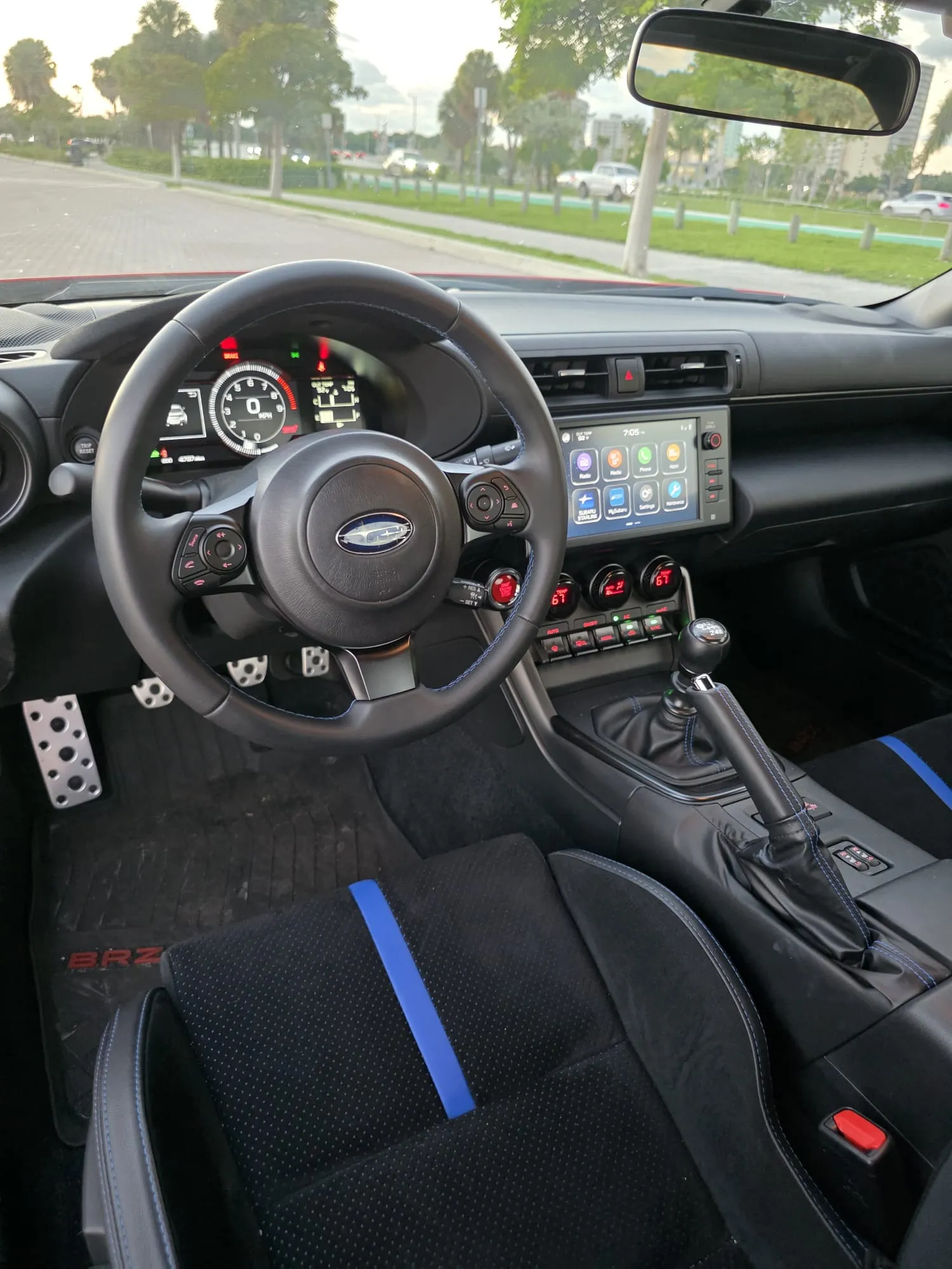 Todos los BRZ cuentan con una pantalla táctil de 8 pulgadas ubicada en el centro del tablero, que funciona como el centro de su sistema de infoentretenimiento. Afortunadamente, la pantalla no depende únicamente de la interacción táctil; también incluye perillas físicas para el volumen y la sintonización, así como varios botones físicos. El sistema viene de serie con Apple CarPlay, Android Auto y acceso a la radio satelital SiriusXM.