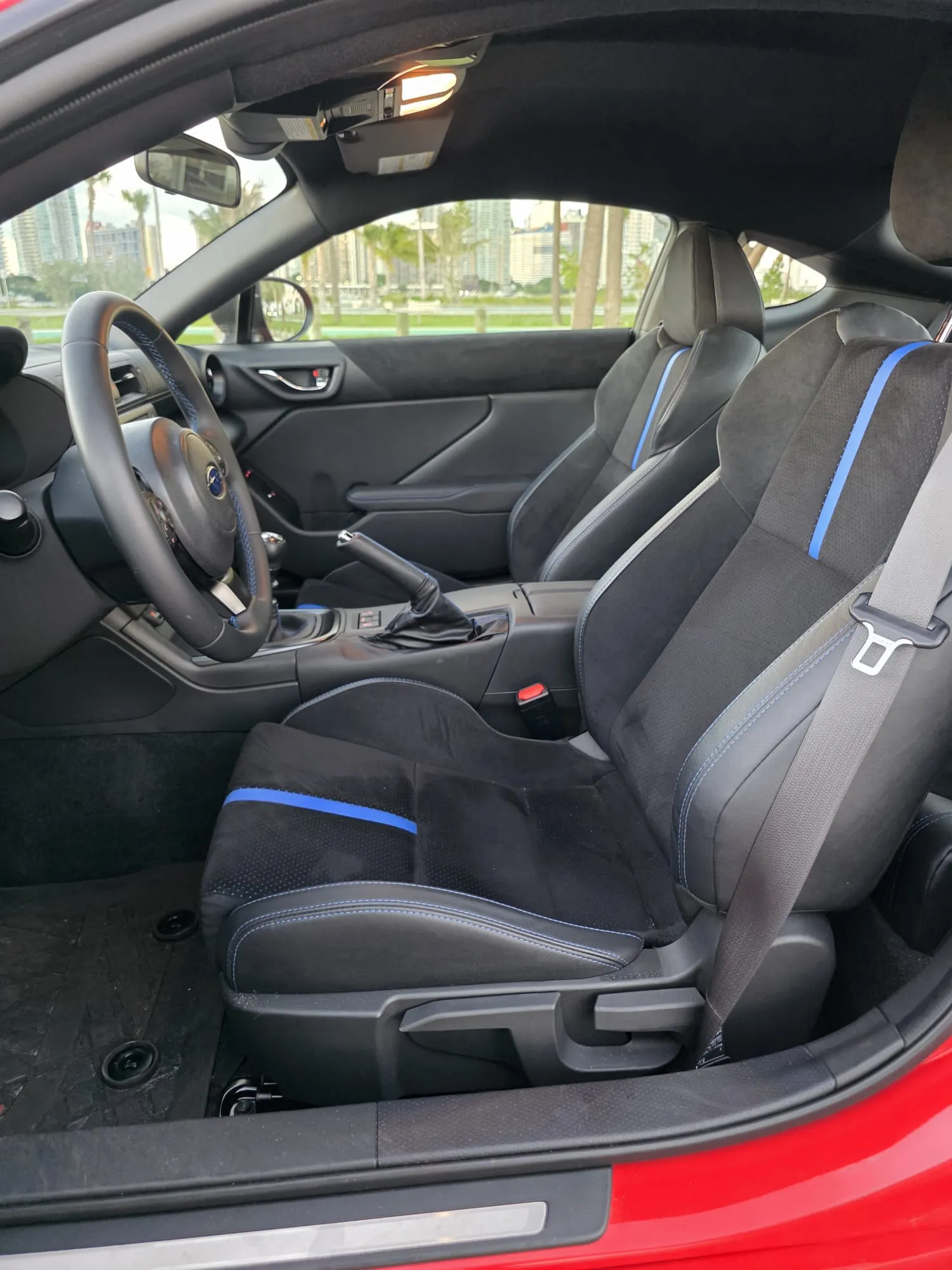 Todos los BRZ ahora incluyen un modo Sport, una característica que antes solo estaba disponible en los modelos con transmisión automática. En los BRZ con transmisión manual, el modo Sport mejora la respuesta del acelerador. Los asientos de microfibra negra de los modelos Limited ahora incorporan detalles en cuero rojo, y las costuras rojas en contraste presentan un tono más oscuro. Además, se aprecian más detalles rojos en todo el interior del Limited. También se han introducido cambios, no especificados, en el sistema de Control Activo de Sonido, que permite escuchar el ruido del motor en el habitáculo.